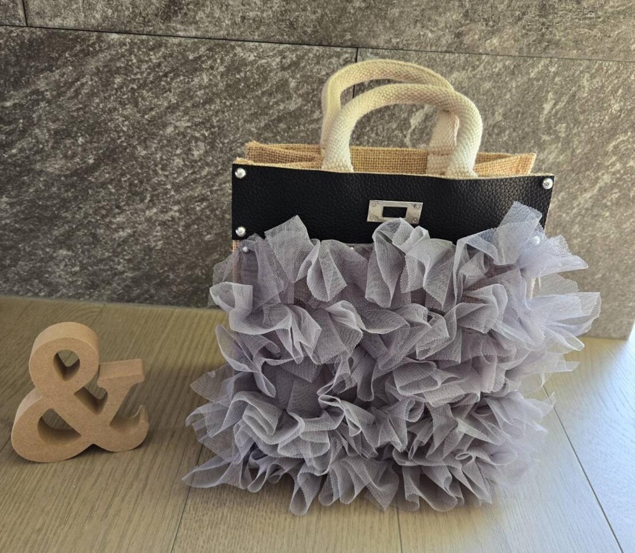 天然素材のジュートを使用したこのバッグは、夏はもちろんのこと、秋や冬のコーディネートにもぴったり。優しい雰囲気のフリルデザインが特徴的で、シンプルなスタイルにアクセントを加えます。