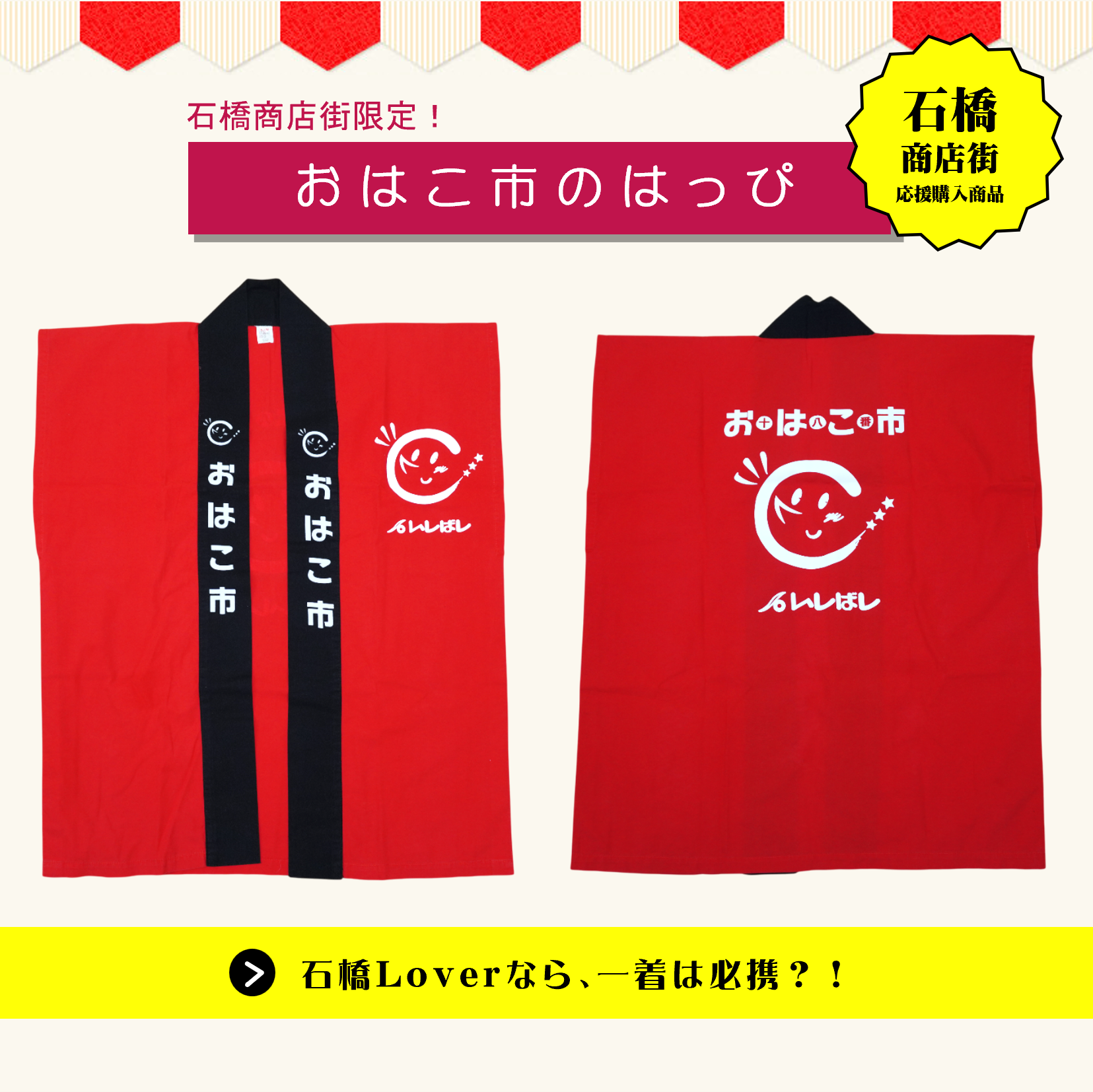 着てもよし、飾ってもよし、石橋商店街Loversのマストアイテム。
